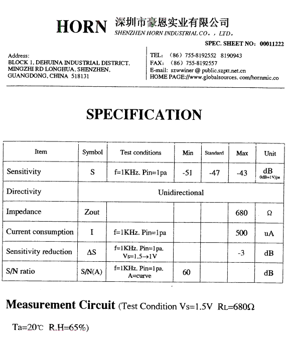 Microphone Electret Cardioid condenser microphone element
