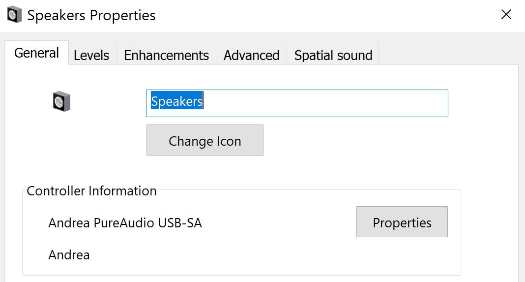 6- Double left click on the word "Andrea". This will open up the "Speaker Properties" window: